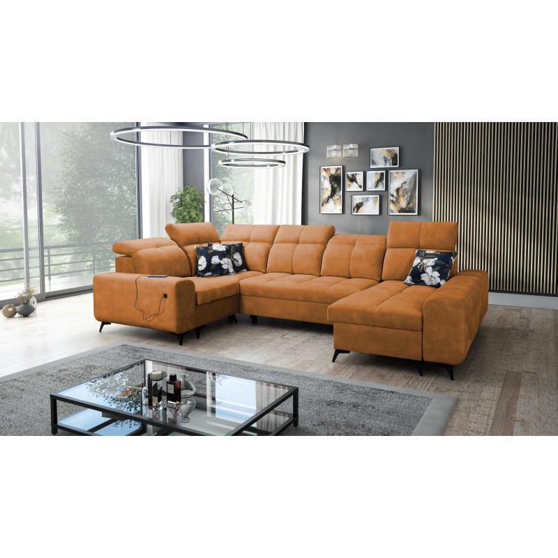 Narożnik w kształcie U Ascot IV z funkcją spania, portem usb i regulowane zagłówki tkanina Wave 6