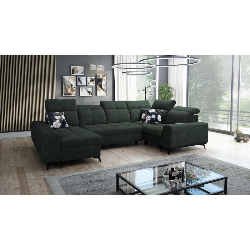 Narożnik w kształcie U Ascot IV z funkcją spania, portem usb i regulowane zagłówki tkanina Wave 12
