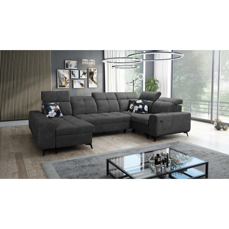 Narożnik w kształcie U Ascot IV z funkcją spania, portem usb i regulowane zagłówki tkanina Wave 16