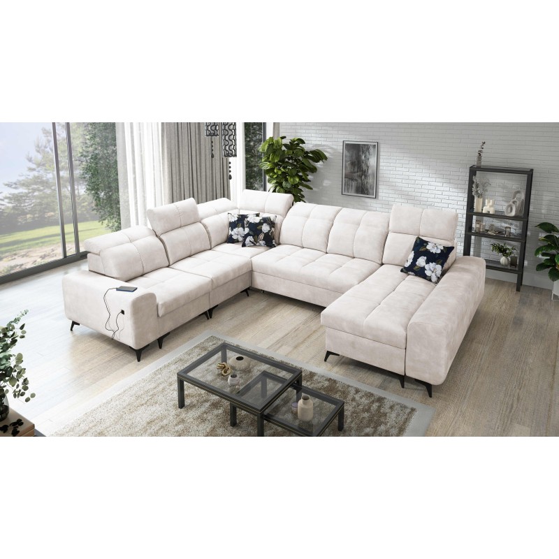Narożnik w kształcie U Ascot VIII z funkcją spania, portem usb i regulowane zagłówki tkanina Wave 1