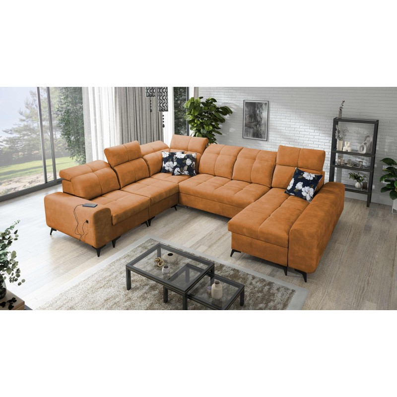 Narożnik w kształcie U Ascot VIII z funkcją spania, portem usb i regulowane zagłówki tkanina Wave 6