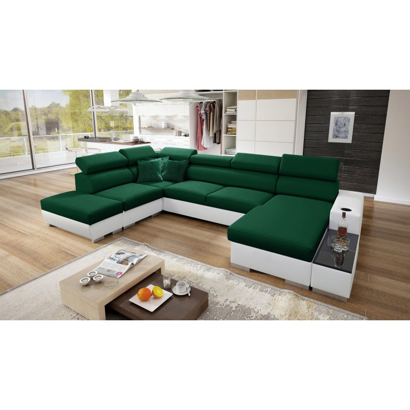 Narożnik w kształcie U Napoli VI z funkcją spania oraz otwieranym barkiem Tkanina Amor Velvet 4311 + Ecoskóra
