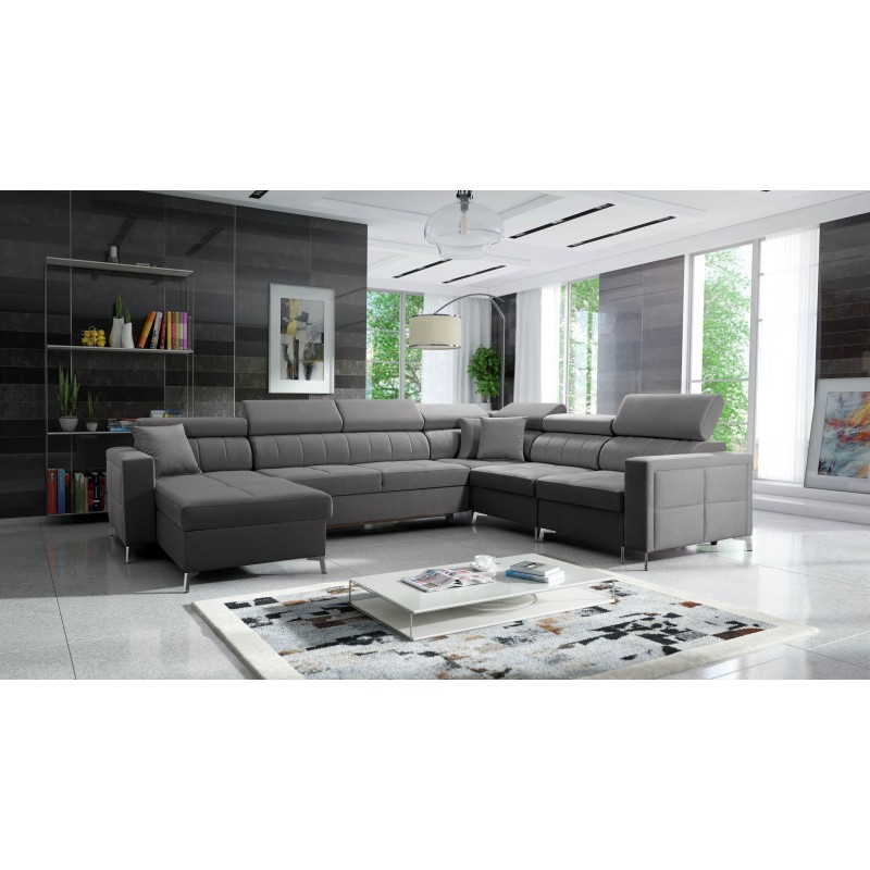 Narożnik w kształcie U Oslo VII z funkcją spania oraz pojemnikiem na pościel tkanina Jaguar 2167