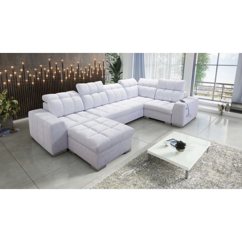 Narożnik w kształcie U Prisma IV z funkcją spania, portem usb oraz pojemnikiem na pościel tkanina Terra 80