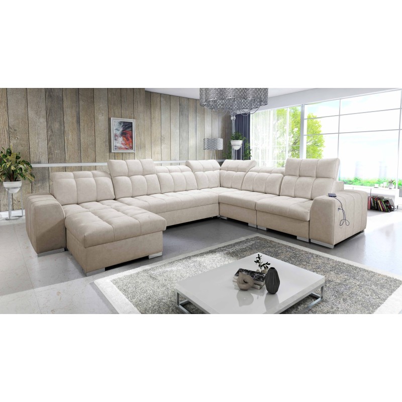 Narożnik w kształcie U Prisma VIII z funkcją spania, portem usb oraz pojemnikiem na pościel tkanina Terra 13