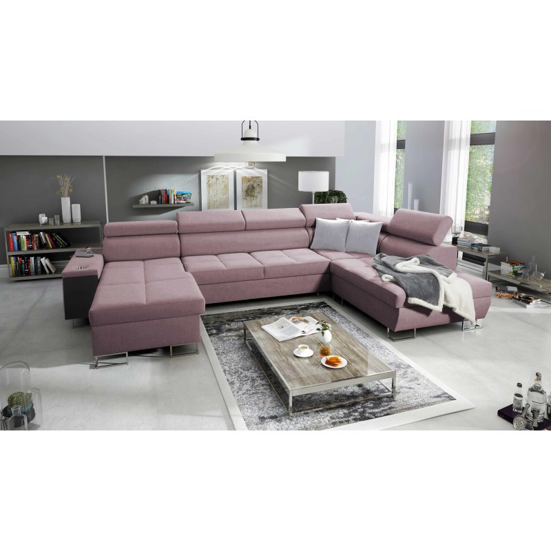 Narożnik w kształcie U Orbix VI z funkcją spania, regulowane zagłówki,port usb oraz pojemnik na pościel tkanina Sawana 61