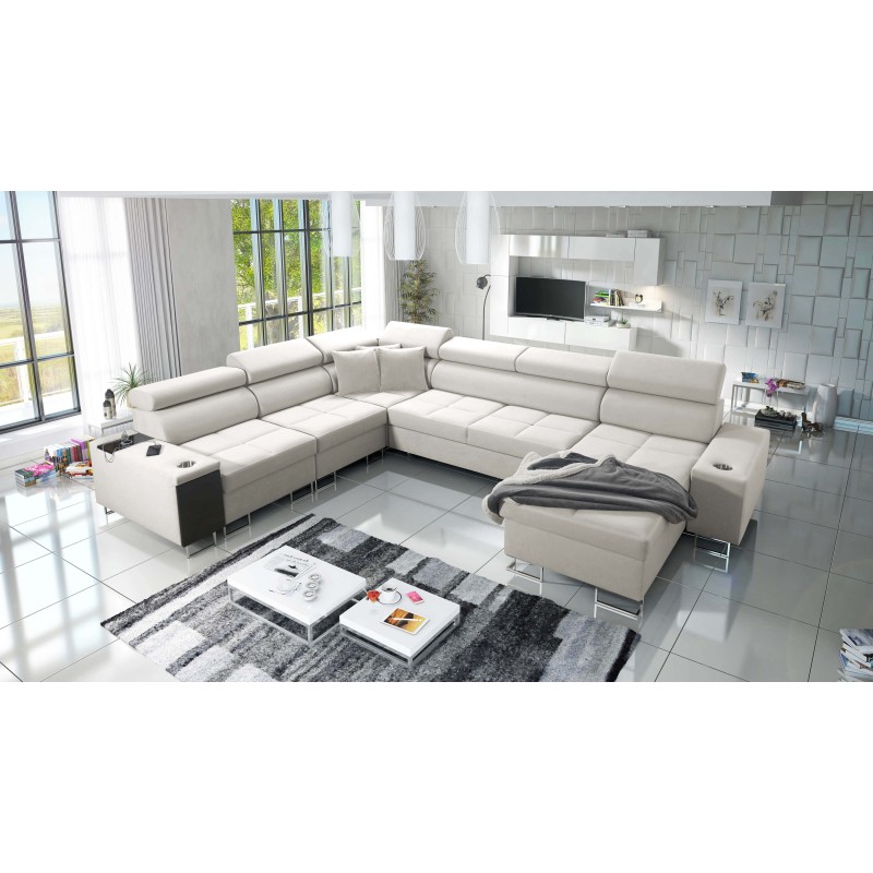 Narożnik w kształcie U Orbix VIII z funkcją spania, regulowane zagłówki,port usb oraz pojemnik na pościel tkanina Ultario Velvet