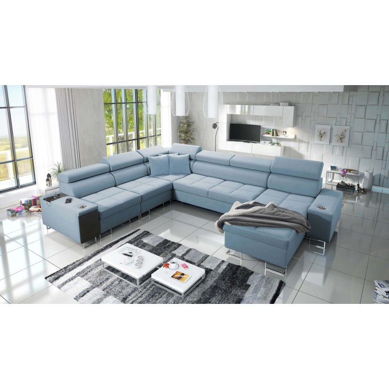 Narożnik w kształcie U Orbix VIII z funkcją spania, regulowane zagłówki,port usb oraz pojemnik na pościel tkanina Ultario Velvet