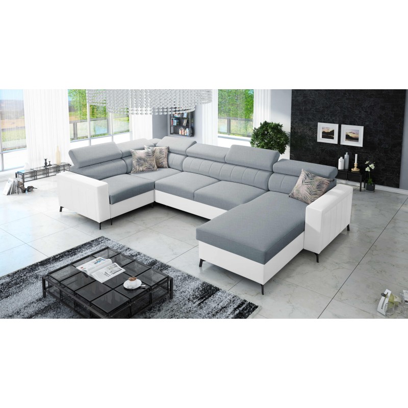 Narożnik w kształcie U Arco V Mini z funkcją spania, regulowane zagłówki tkanina Sawana 72 + Ecoskóra