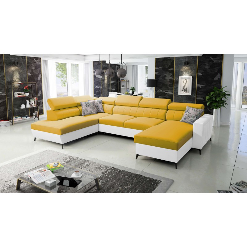 Narożnik w kształcie U Arco VI z funkcją spania, regulowane zagłówki tkanina Mono 236 + Ecoskóra