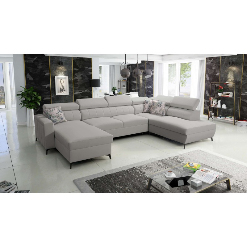 Narożnik w kształcie U Arco VI z funkcją spania, regulowane zagłówki tkanina Mono 244