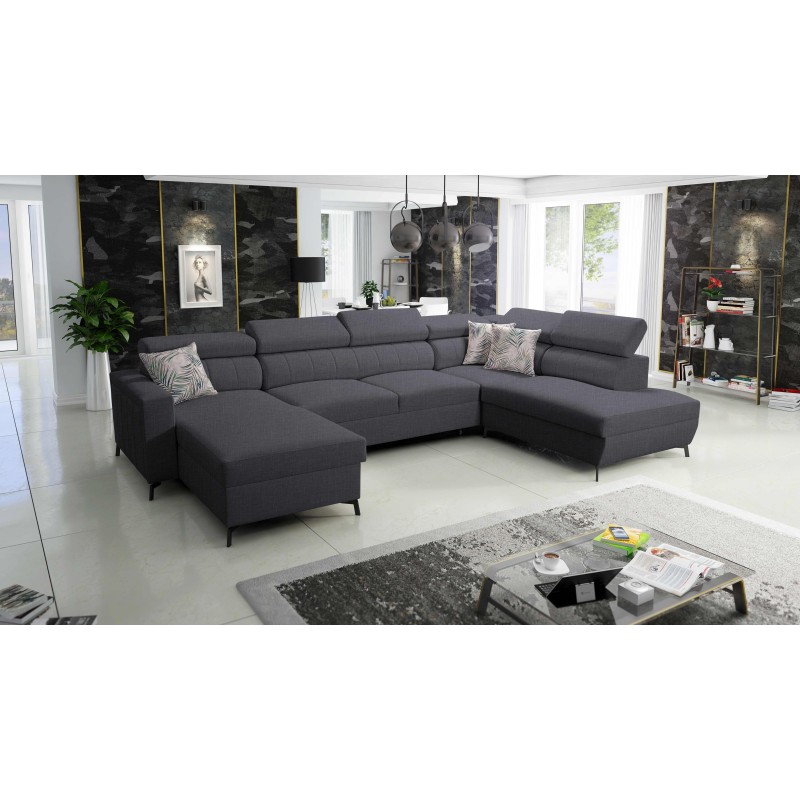Narożnik w kształcie U Arco VI z funkcją spania, regulowane zagłówki tkanina Sawana 96