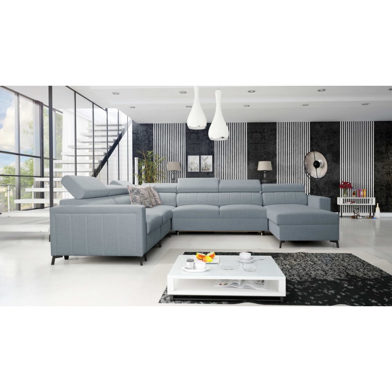 Narożnik w kształcie U Arco VII z funkcją spania, regulowane zagłówki tkanina Sawana 72