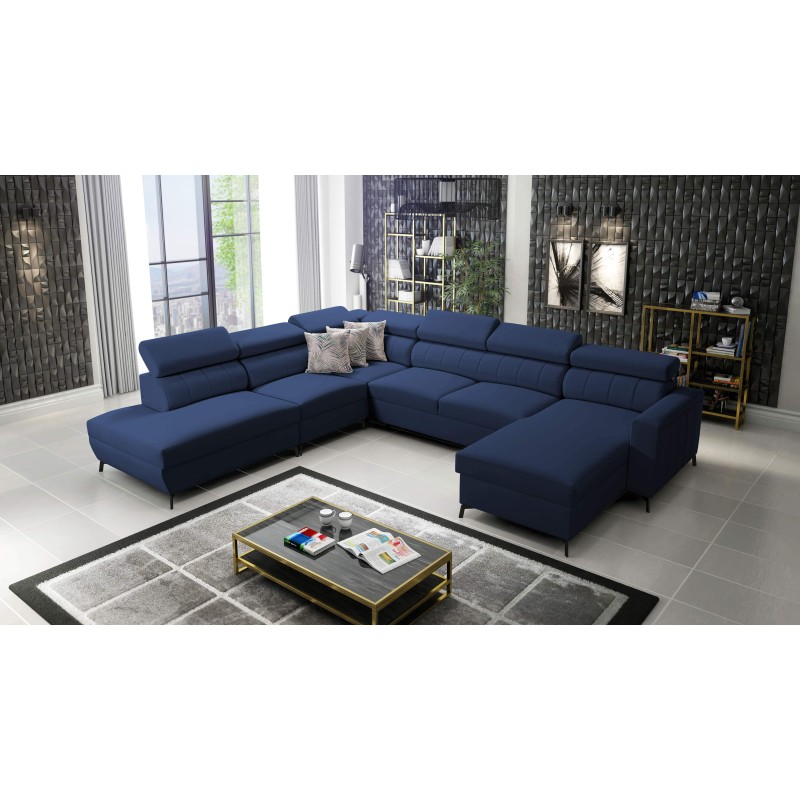 Narożnik w kształcie U Arco IX z funkcją spania, regulowane zagłówki tkanina Mono 241