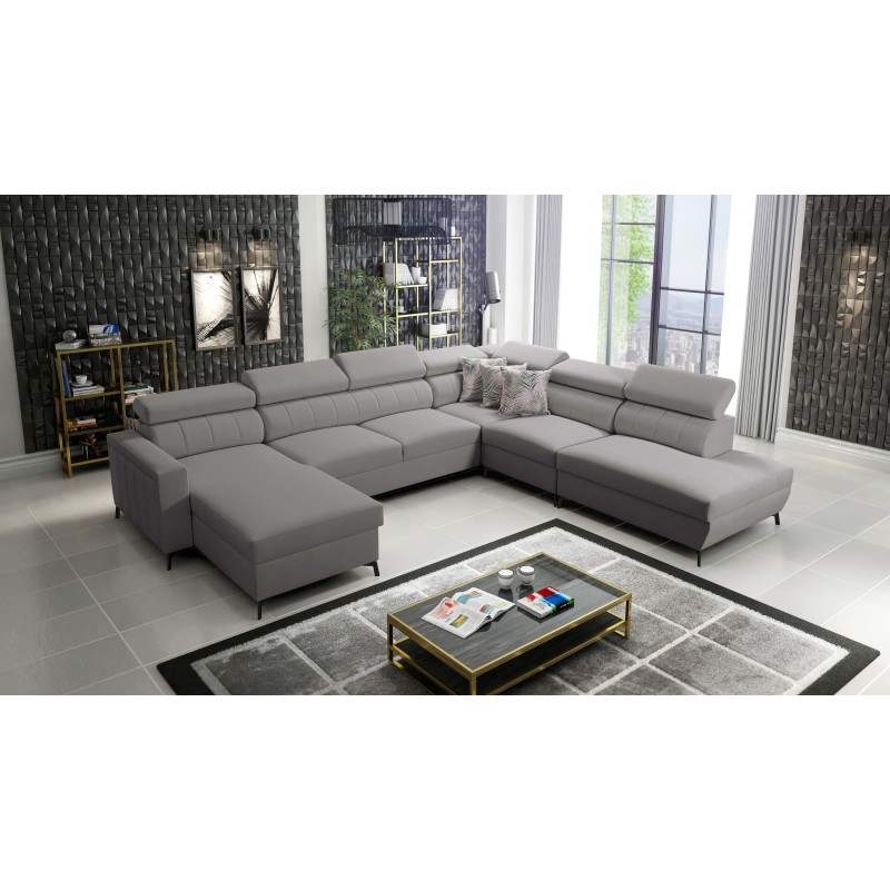 Narożnik w kształcie U Arco IX z funkcją spania, regulowane zagłówki tkanina Mono 246