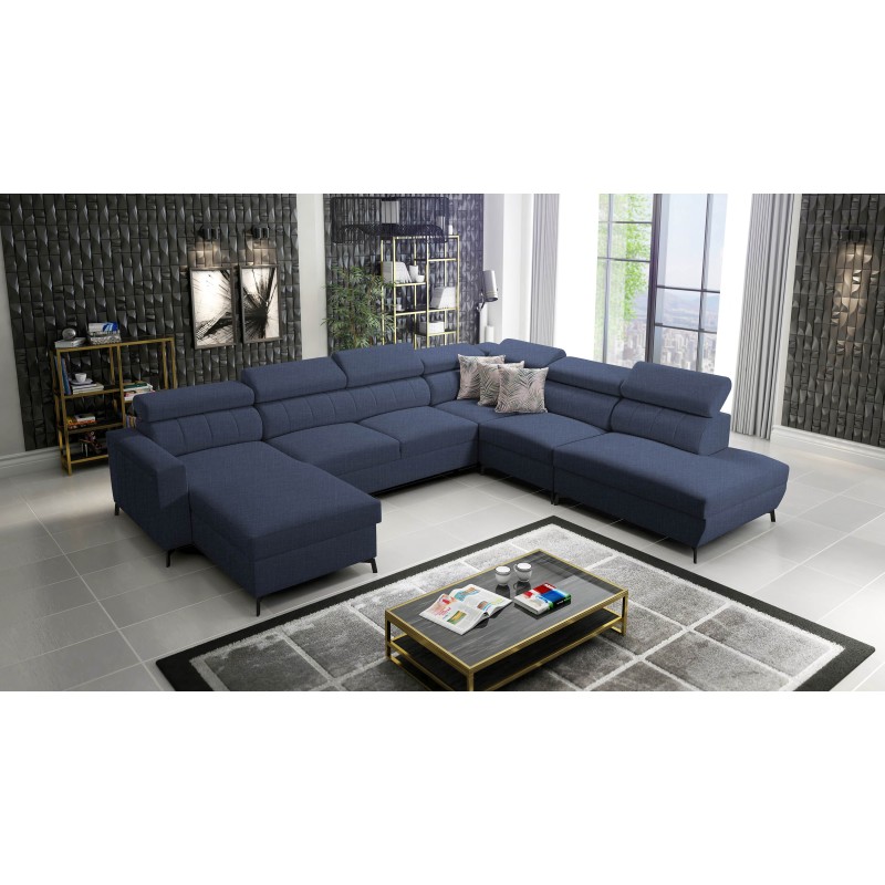 Narożnik w kształcie U Arco IX z funkcją spania, regulowane zagłówki tkanina Sawana 80