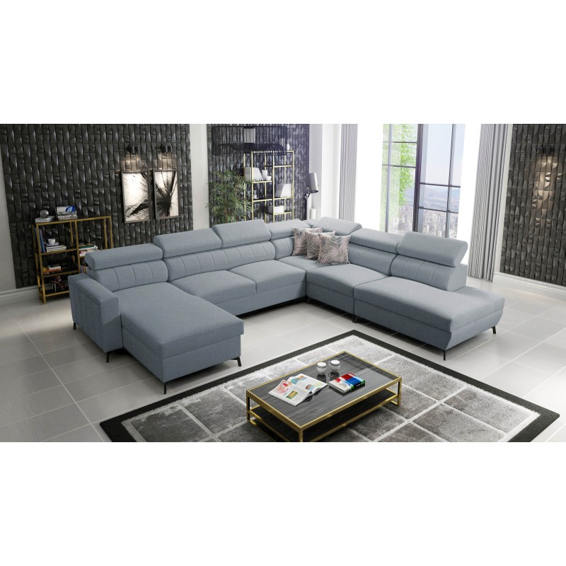 Narożnik w kształcie U Arco IX z funkcją spania, regulowane zagłówki tkanina Sawana 72