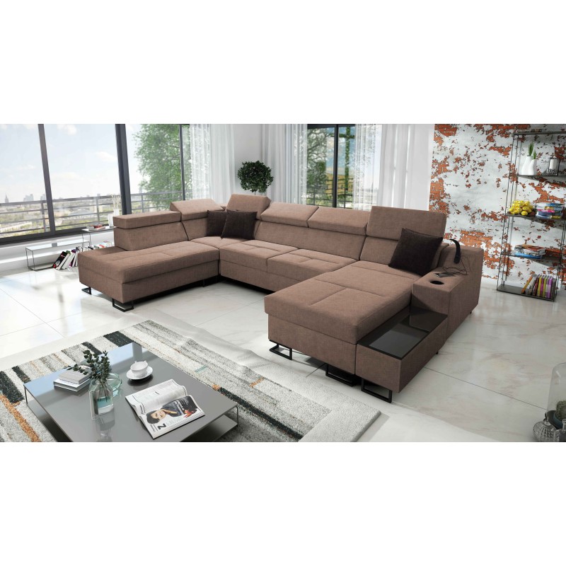 Narożnik w kształcie U Avanti VI z funkcją spania oraz lampką z portem usb tkanina Sawana 25