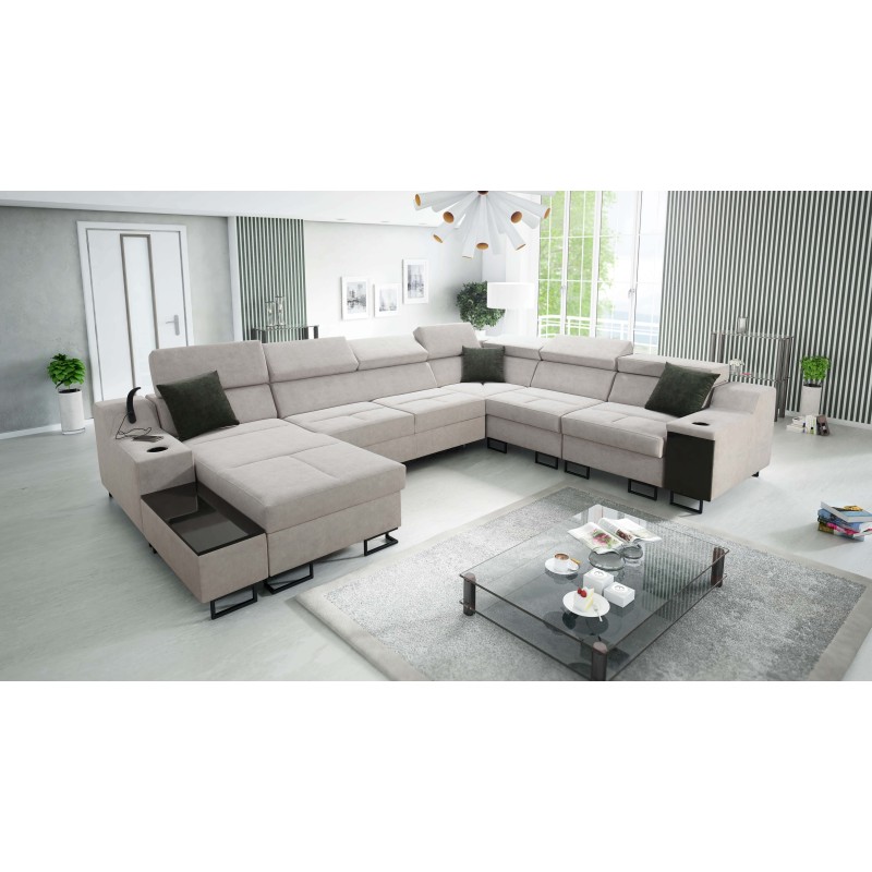 Narożnik w kształcie U Avanti VIII z funkcją spania oraz lampką z portem usb tkanina Whisper 16