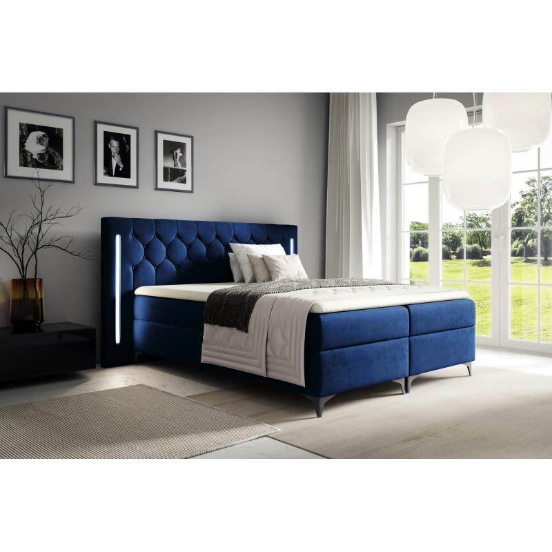 Łóżko kontynentalne Arius Ozdobne pikowania z oświetleniem led na zagłowiu tkanina Fresh 11