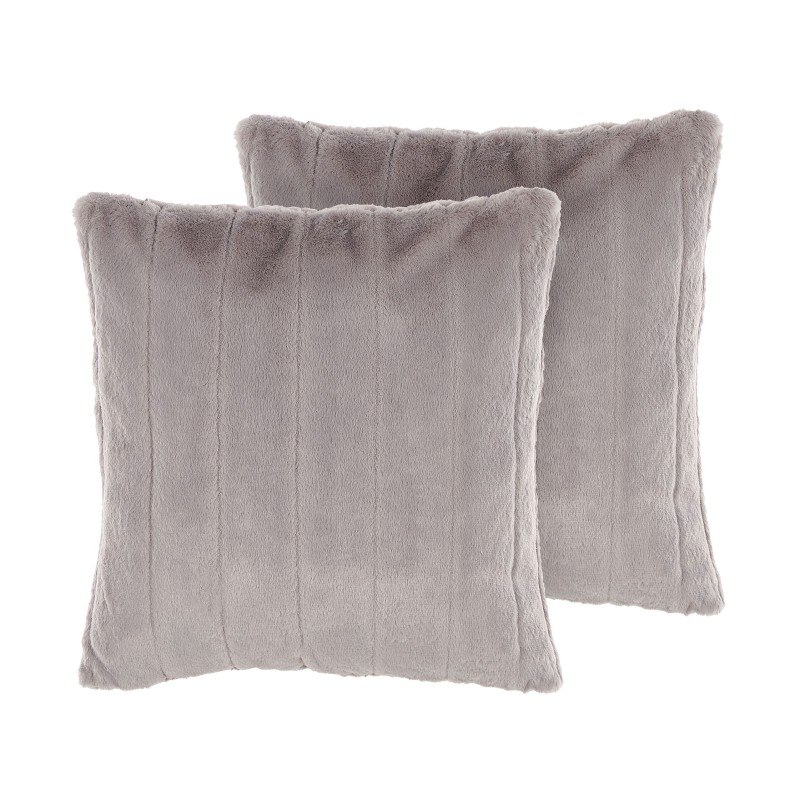 Zestaw 2 poduszek dekoracyjnych PUMILA Sztuczne futro 45 x 45 cm Jasnoszary W paski