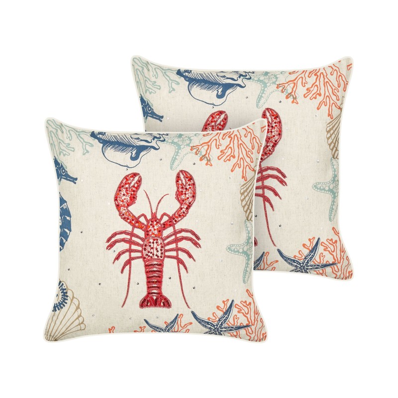 Zestaw 2 poduszek dekoracyjnych KELP Len 45 x 45 cm Beżowy Wzór zwierzęcy