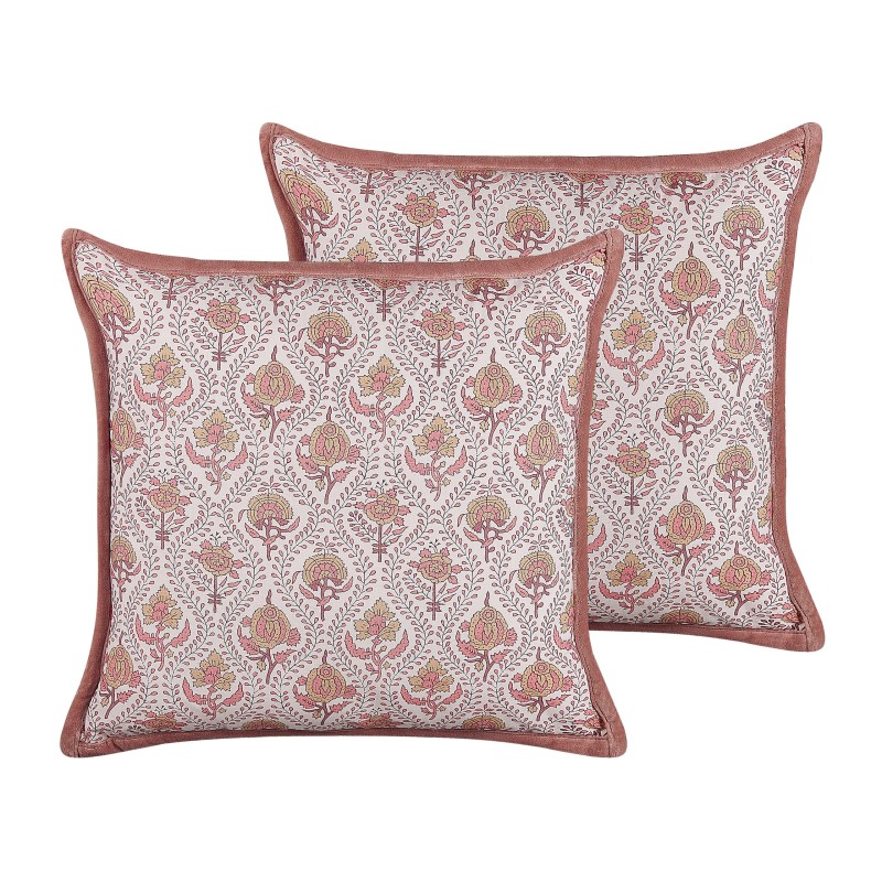 Zestaw 2 poduszek dekoracyjnych PICEA Welur 45 x 45 cm Czerwony Wzór kwiatowy