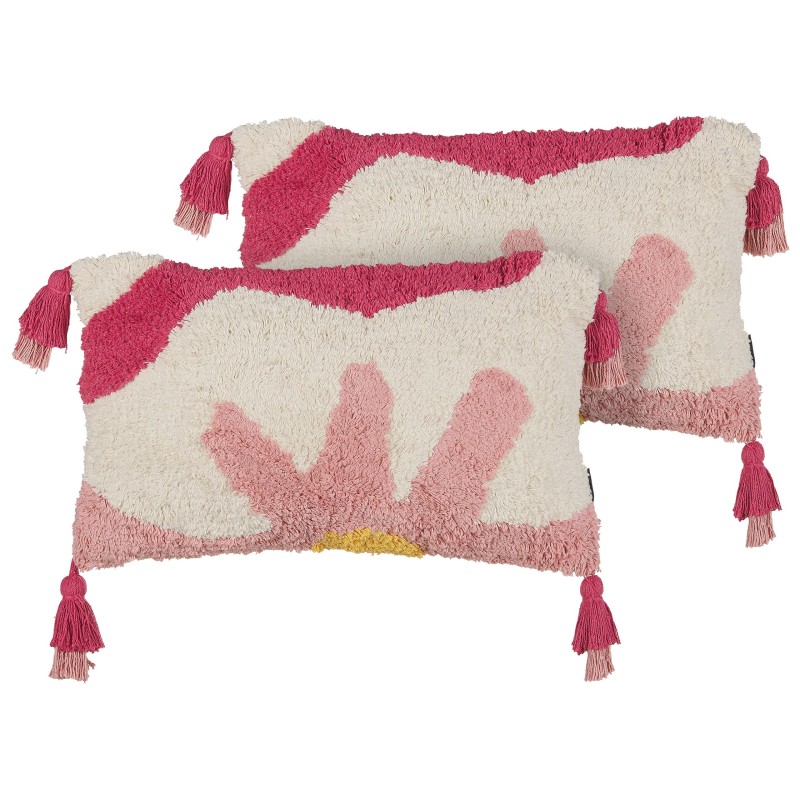 Zestaw 2 poduszek dekoracyjnych ACTAEA Bawełna 30 x 50 cm Różowy Wzór kwiatowy
