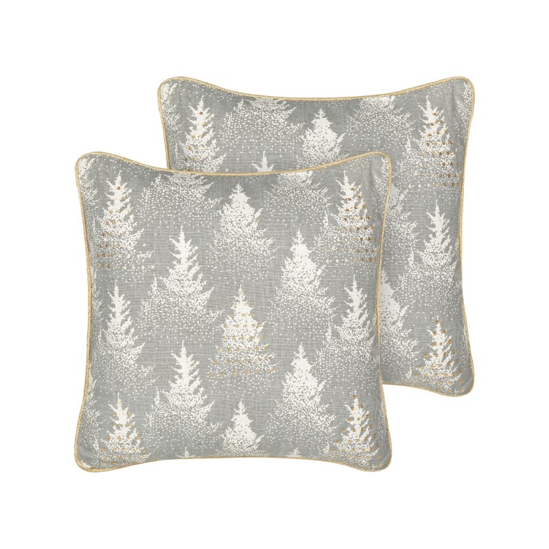Zestaw 2 poduszek dekoracyjnych BILLBERGIA Bawełna 45 x 45 cm Szary Wzór świąteczny