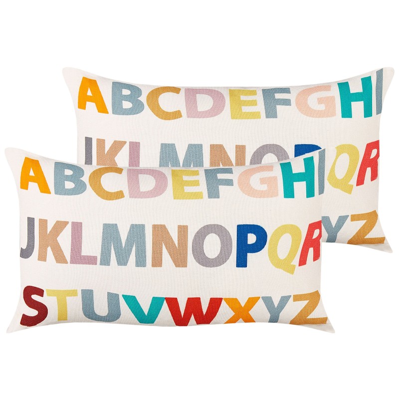 2 bawełniane poduszki dla dzieci z motywem alfabetu 30 x 50 cm wielokolorowe ASARUM