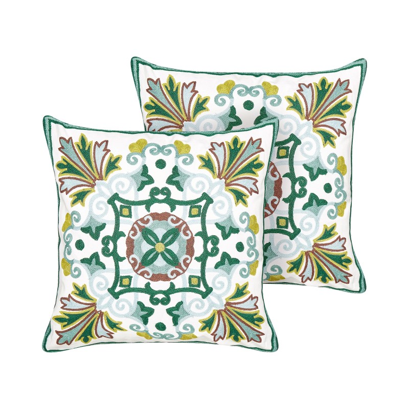 Zestaw 2 poduszek dekoracyjnych ELANITE Bawełna 45 x 45 cm Zielony Wzór orientalny