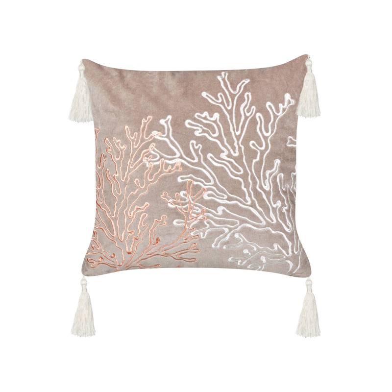 Poduszka dekoracyjna MAZZAELLA Welur 45 x 45 cm Beżowoszary Wzór roślinny