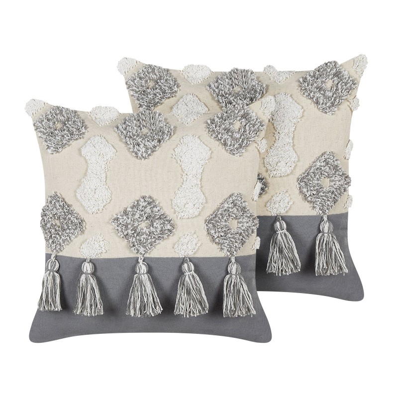 Цей набір з 2 бавовняних подушок у стилі бохо підвищить ваш комфорт відпочинку, незалежно від того, чи ви розслабляєтеся на дивані або в ліжку. Цей унікальний аксесуар має вишитий візерунок у формі діамантів та китиці, що надають подушці унікального вигляду. Завдяки стійкому та приємному на дотик матеріалу, з якого виготовлені подушки, вони служитимуть протягом багатьох років, не втрачаючи своєї якості.