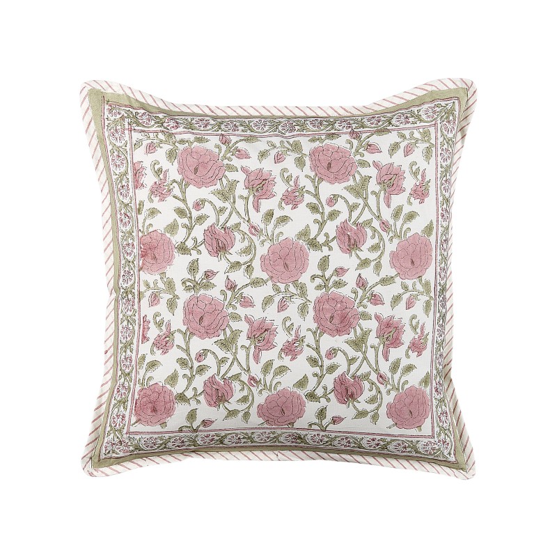 Додайте трохи романтичного стилю до свого дому за допомогою цієї декоративної подушки з китицями. Зачаровуючий квітковий візерунок виконаний вручну технікою блочного друку. Бавовняна подушка має м'який наповнювач і застібку-блискавку для зручності використання.