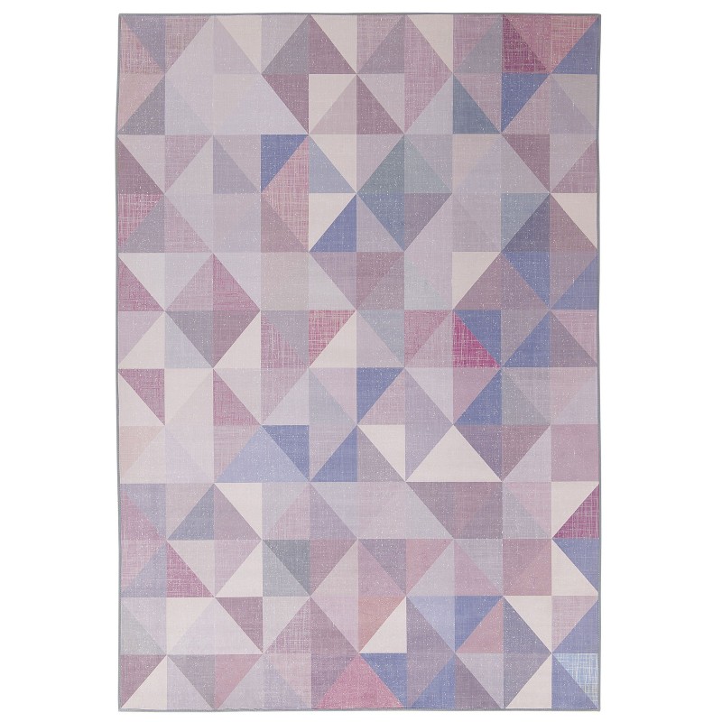 Цей килим стане чудовим доповненням до сучасних інтер'єрів. Його геометричний візерунок складається з багатьох маленьких трикутників, які створюють вражаючий ефект. Ніжні відтінки синього, сірого і рожевого додають інтер'єру кольору і доповнюють приміщення, не перевантажуючи його. Протиковзка основа робить килим ідеальним як для вітальні, так і для спальні.