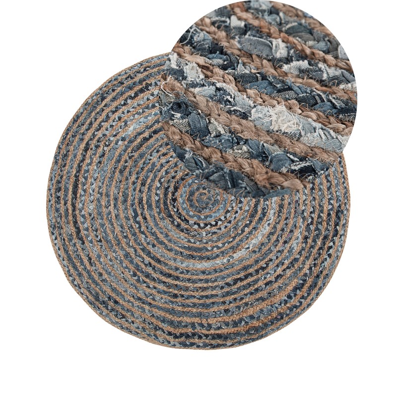 Килим круглий з джуту ø 120 см синьо-бежевий MASLAK