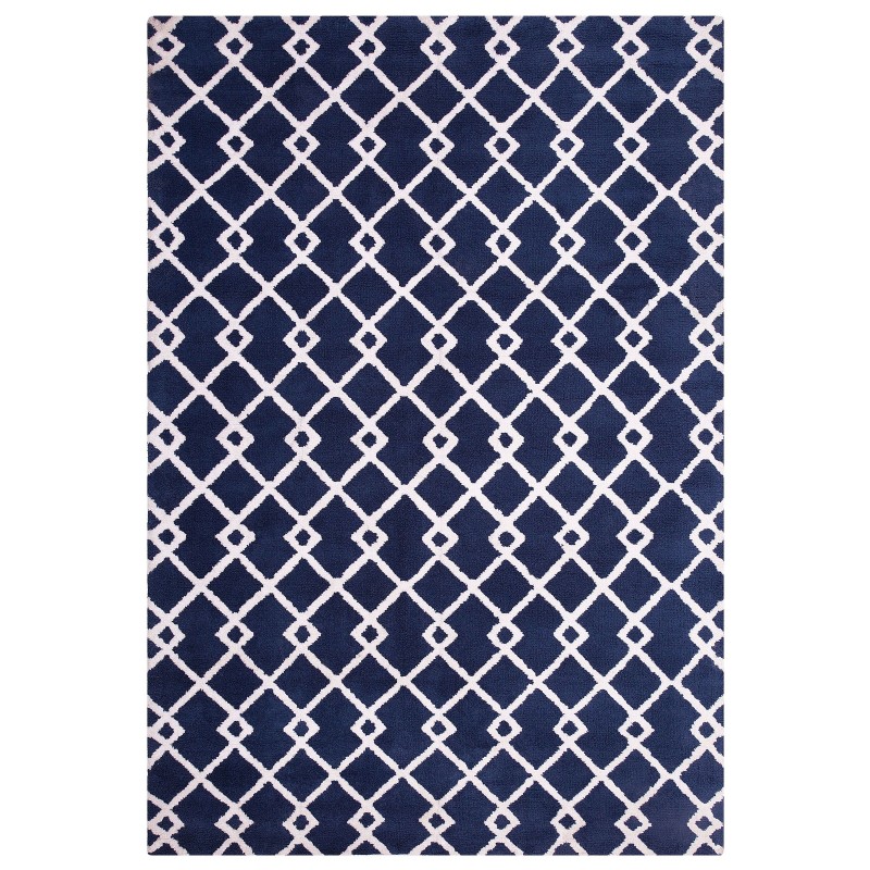 Додайте колірний акцент у вітальню або спальню за допомогою цього коротковорсного килима. Геометричний візерунок на виразному темно-синьому тлі надає йому сучасного вигляду. Килим виготовлений з високоякісного матеріалу, легко доглядається та приємний на дотик.