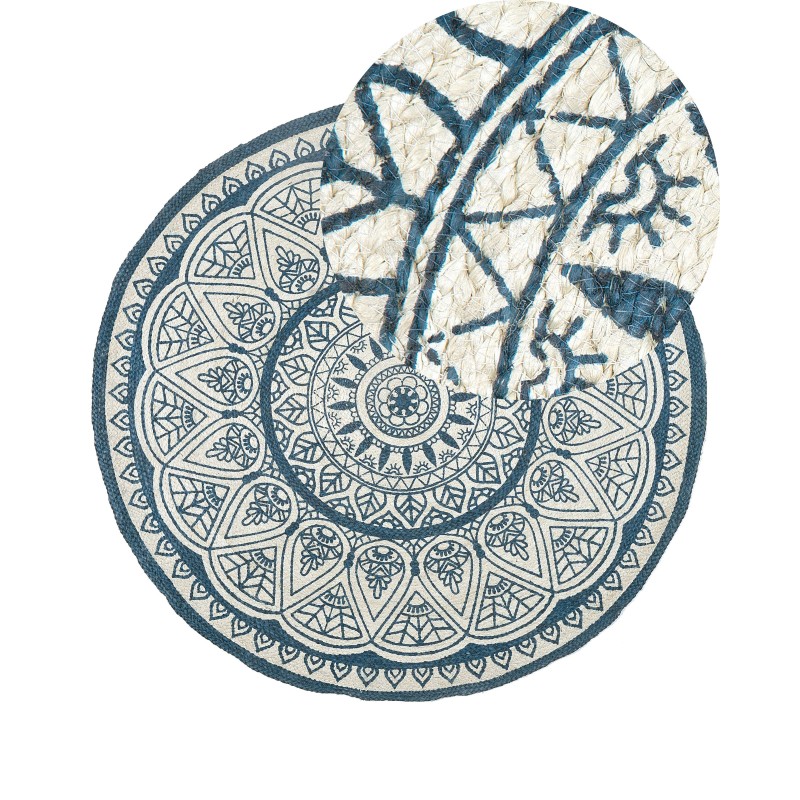 Круглий килим з джуту ⌀ 120 см синій ANADERE