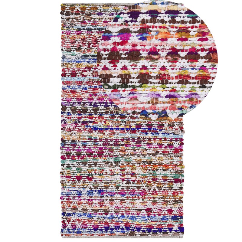 Зробіть інтер'єр вашого дому більш привабливим та яскравим завдяки цьому унікальному килиму з геометричним візерунком. Він виготовлений вручну з надзвичайною ретельністю з поліестерових волокон та бавовни, що робить його приємним на дотик. Килим є чудовим доповненням до вітальні та спальні в сучасному, бохо або традиційному стилі.