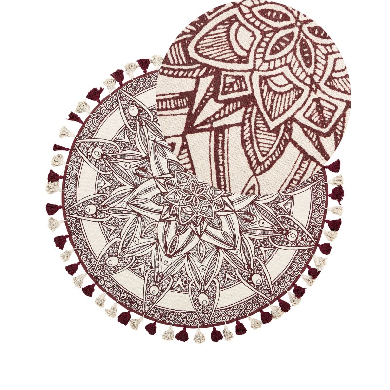 Килим круглий бавовняний з орієнтальним принтом ø 120 см кремово-червоний OLTU