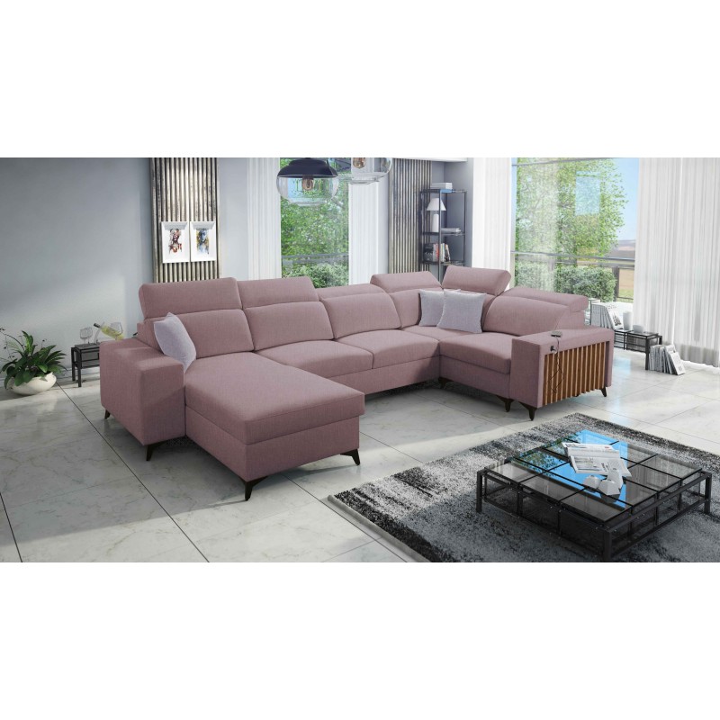 Кутовий диван у формі U Alto IV з ламелями, функцією сну та регульованими підголівниками тканина Sawana 61