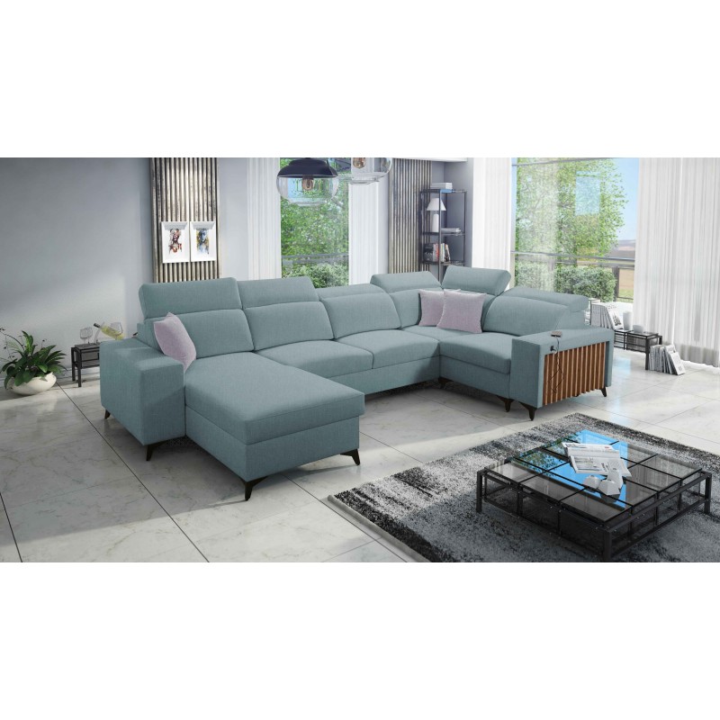 Диван у формі U Alto IV з ламелями, функцією сну та регульованими підголівниками тканина Sawana 72