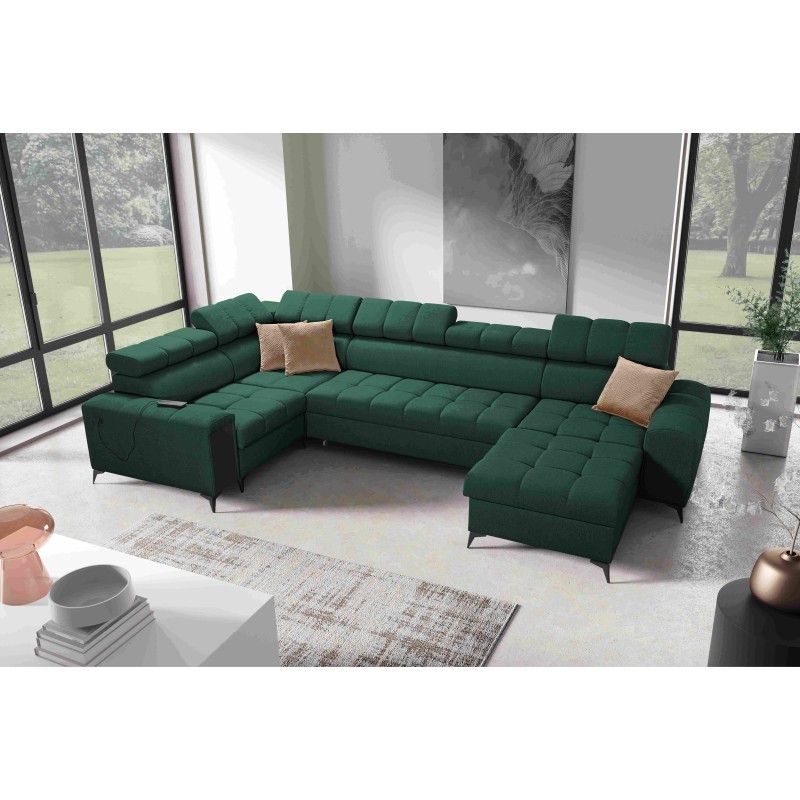 Кутовий диван у формі U Venna IV Maxi з функцією сну, USB-портом та відкидним баром, тканина Avra 12