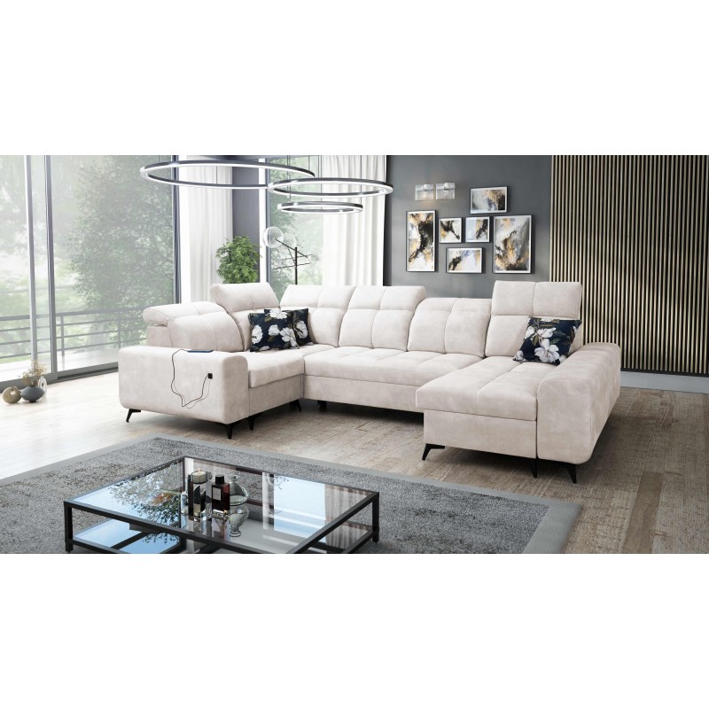Кутовий диван у формі U Ascot IV з функцією сну, портом USB і регульованими підголівниками тканина Wave 1