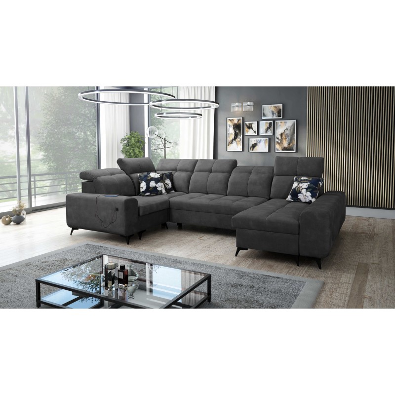 Кутовий диван у формі U Ascot IV з функцією сну, USB-портом і регульованими підголівниками, тканина Wave 16