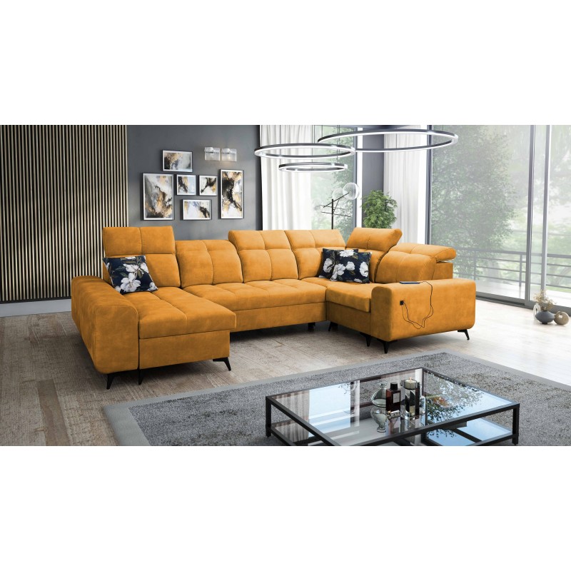 Кутовий диван у формі U Ascot IV з функцією сну, USB портом і регульованими підголівниками тканина Wave 5