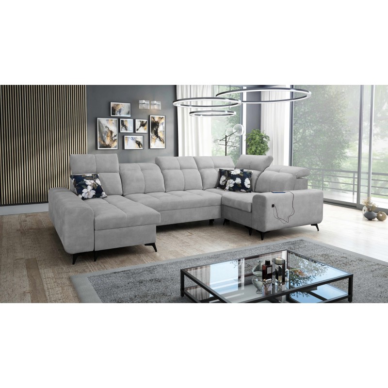 Кутовий диван у формі U Ascot IV з функцією сну, портом USB і регульованими підголівниками тканина Wave 15