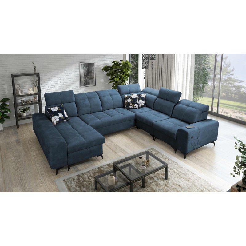 Кутовий диван у формі U Ascot VIII з функцією сну, USB-портом і регульованими підголівниками тканина Wave 14