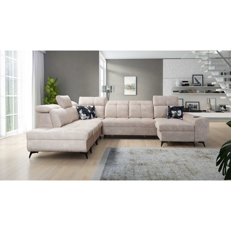 Кутовий диван у формі U Ascot X з функцією сну, USB-портом і регульованими підголівниками тканина Wave 2