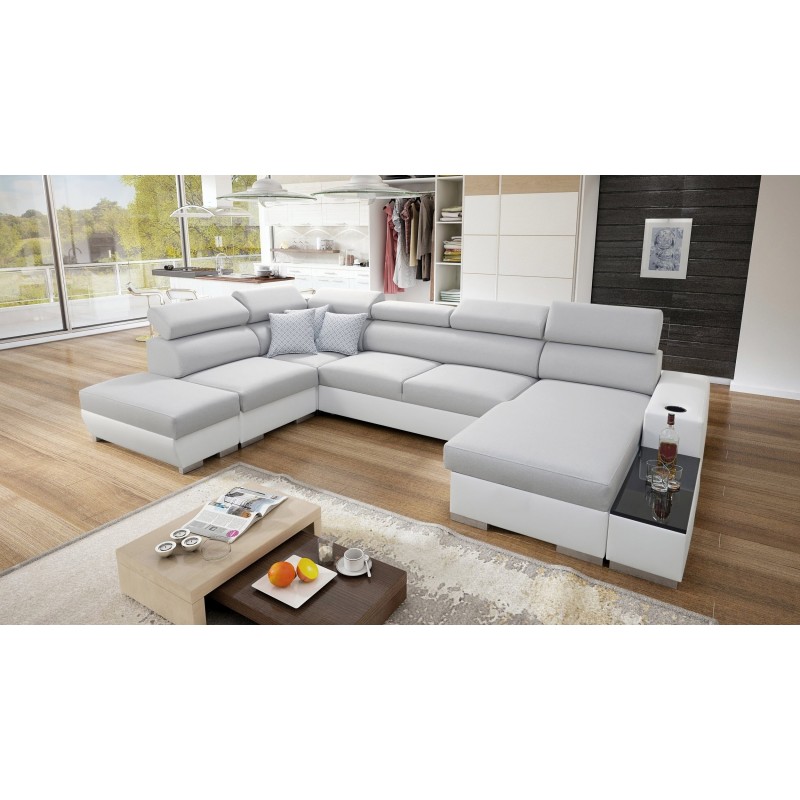 Диван у формі U Napoli VI з функцією сну та відкривним баром Тканина Lexo 6601 + Екошкіра